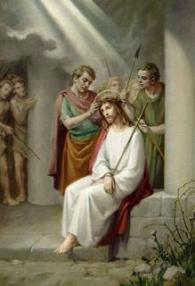 Hill deg, Maria, full av nåde, Herren er med deg, velsignet er du iblant kvinner, og velsignet er ditt livs frukt, Jesus, - Jesus blir tornekronet. - Hellige Maria, Guds mor, be for oss syndere, nå og i vår dødstime. Amen.